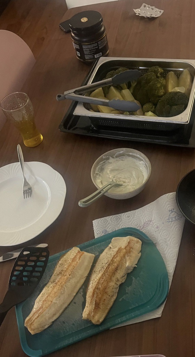Die Forelle mit Broccoli, Kartoffeln und einem Skyr-Dip